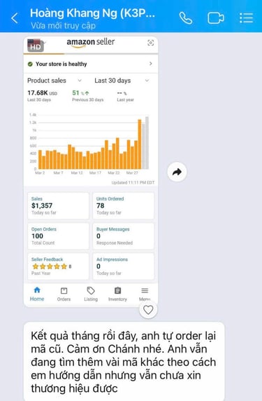 Dưới đây là kết quả của một số học viên đã tự vận hành cửa hàng Amazon