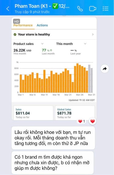 Từ những đơn nhỏ, tôi scale dần lên nhiều brand, nhiều mã hàng hơn. Cứ thế, hệ thống bán hàng lớn dần từng tháng – từng năm.